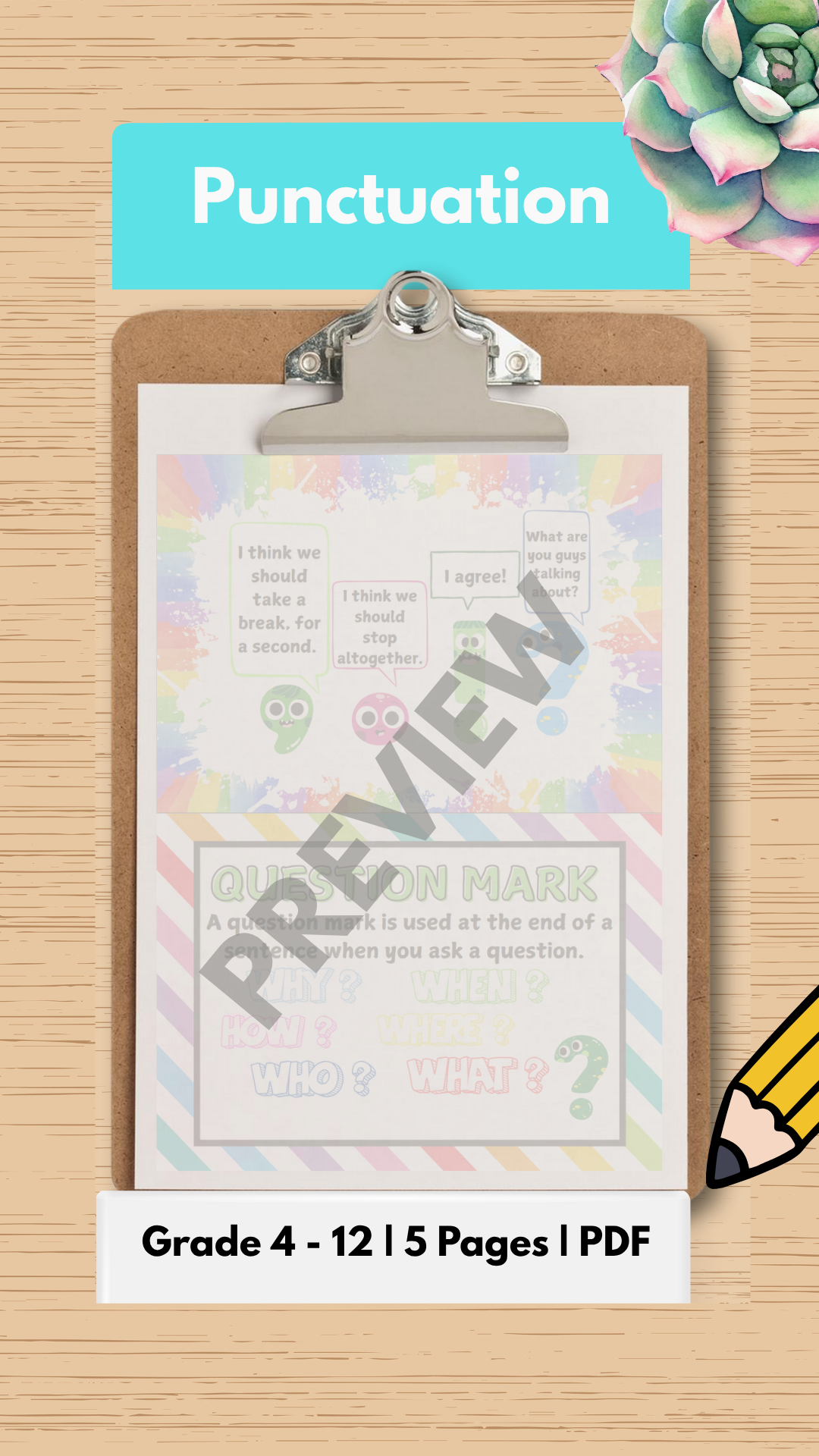 Our Punctuation Posters feature the full stop, comma, exclamation mark, and question mark to help students understand and use these key punctuation marks correctly. Designed to support learning, these posters provide clear examples and simple explanations, making it easier for learners to improve their writing and communication skills with confidence.