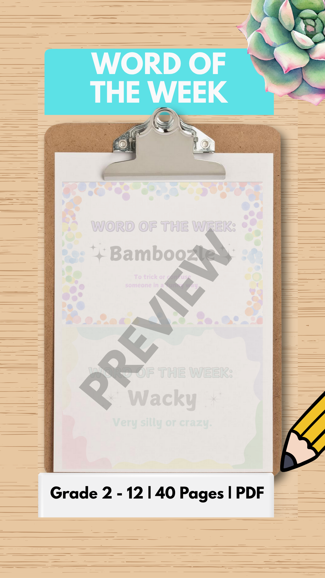 Discover the "Word of the Week" collection, featuring 40 pages each highlighting a new word along with its meaning. This resource supports vocabulary growth by introducing one word at a time, making learning manageable and encouraging consistent progress. Perfect for students, educators, or anyone eager to expand their language skills in a supportive and engaging way.